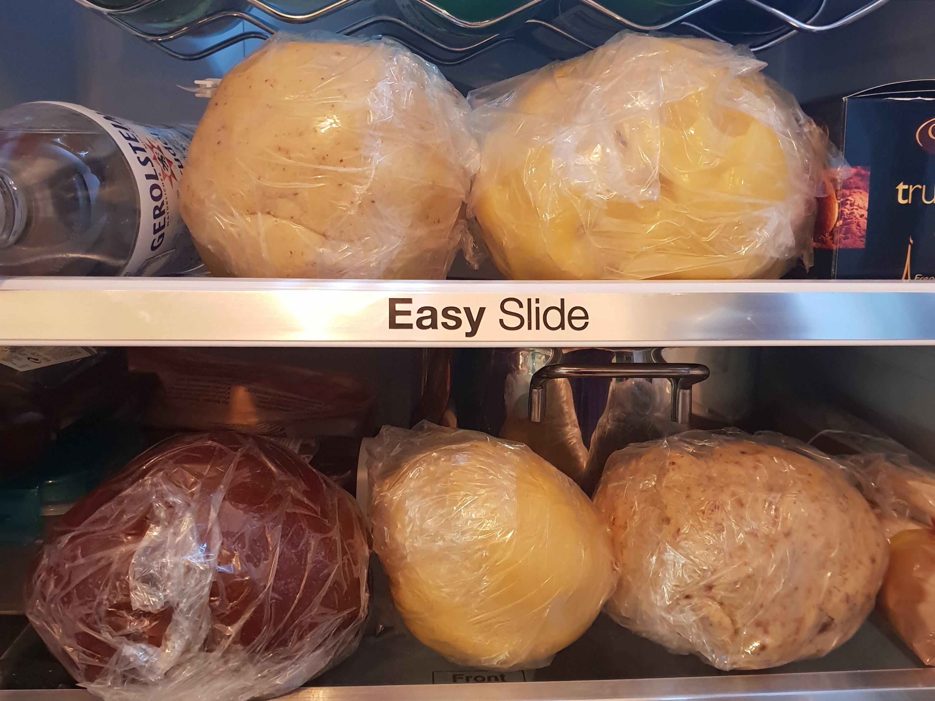 En un punto donde la ya no pueda, debes amasarla a mano. Cuando esté todo integrado y la masa ya no se separe, haz una bola con la masa. Cubre la bola de masa con celofán de cocina (Frischhaltefolie) o en una bolsa de plástico y déjala en el refrigerador para que reposar toda la noche.